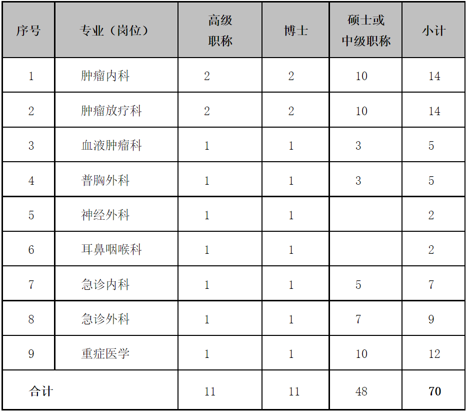 根据医院发展规划,现面向全社会公开招聘以下专业技术人才:
