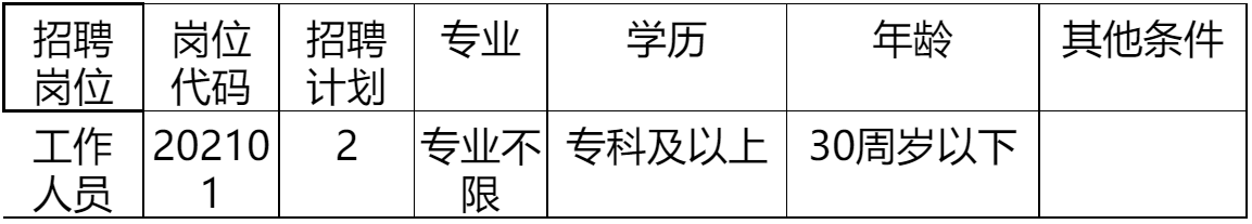 本次招聘工作人员计划为2名,不纳入编制管理,具体招聘岗位为: