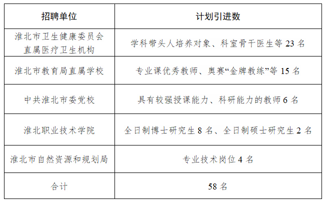 计划引进急需紧缺人才58名(具体岗位及资格条件见附件)。