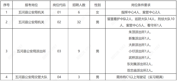 2.限五河县户籍或持有五河县居住证人员(报考留置看护岗位人员需具有蚌埠市市区户籍或五河县户籍或持有居住证);